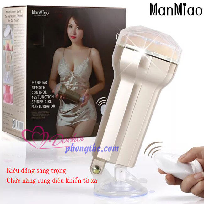 Âm đạo giả gắn tường cao cấp ManMiao Gold điều khiển xa 12 chế độ rung. Bướm giả dành cho nam giới. Dụng cụ giải quyết sinh lý nam