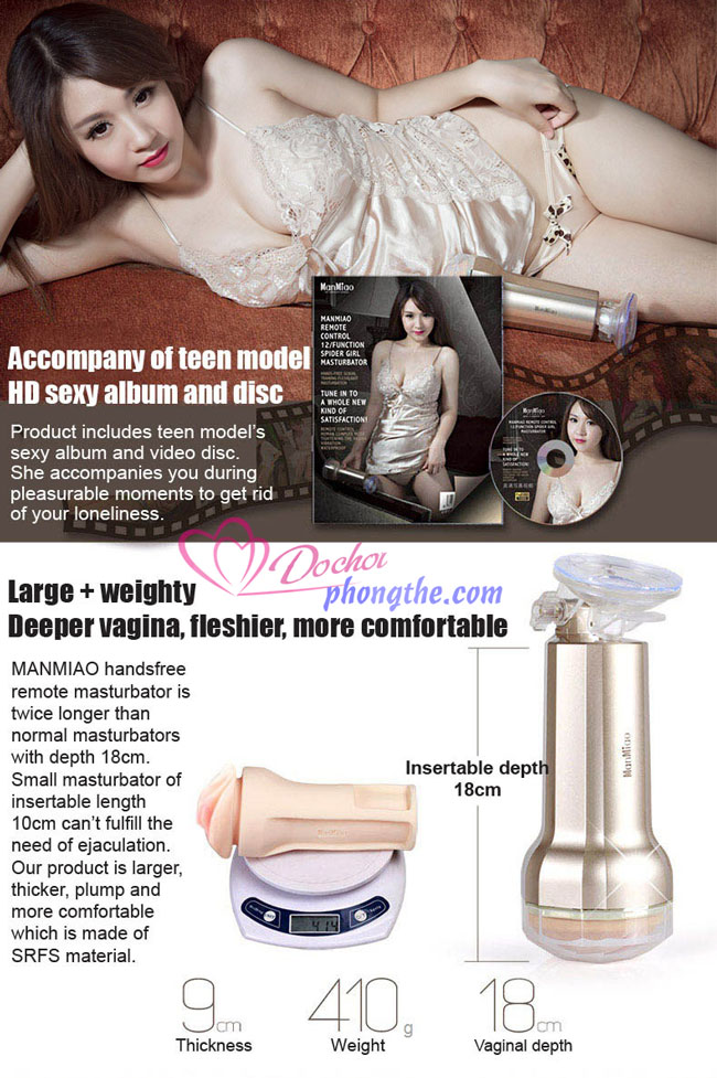 - Âm đạo giả gắn tường cao cấp ManMiao gold điều khiển xa giúp thỏa mãn nhu cầu sinh lý cho các anh khi bà xã mang bầu mà không muốn ra ngoài tạo được sự chung thủy tuyệt đối. Nhờ kiểu dáng thiết kế giống thật với âm hộ của phụ nữ nên sản phẩm được ưa chuộng và bán chạy số 1 tại Châu Á. Và ngay khi được tung ra trên thị trường Việt Nam sản phẩm cũng có độ HÓT không kém khi được các anh săn lùng và mua bằng được để thoải mãn đam mê và để một lần tận hưởng cảm giác sung sướng trên mây.