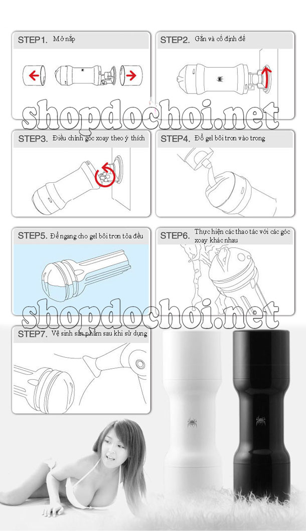 - Âm đạo giả Spiderman có đế xoay 120 độ nên các anh có thể sử dụng được nhiều tư thế khác nhau. Các anh ko sợ rơi vì ở phía dưới chân đế có các ốc vít, các chỉ xoáy chặt là không phải lo lắng gì.