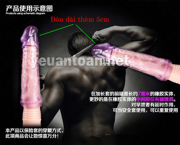 - Bao cao su đôn zên nối dài 5 cm làm cho dương vật to ra và dài hơn giúp chúng ta khắc phục khuyết điểm dương vật nhỏ bẩm sinh. Chống xuất tinh sớm , kéo dài thời gian quan hệ .