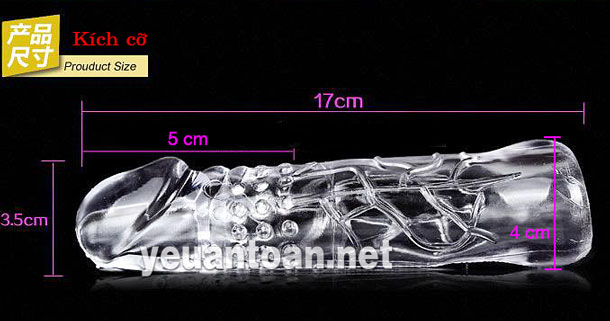 Bao cao su đôn dên tăng kích thước dương vật đặc biêt nối dài 5cm. Thân có gân gai trong suốt siêu mềm. Bao cao su hàng khùng dùng nhiều lần