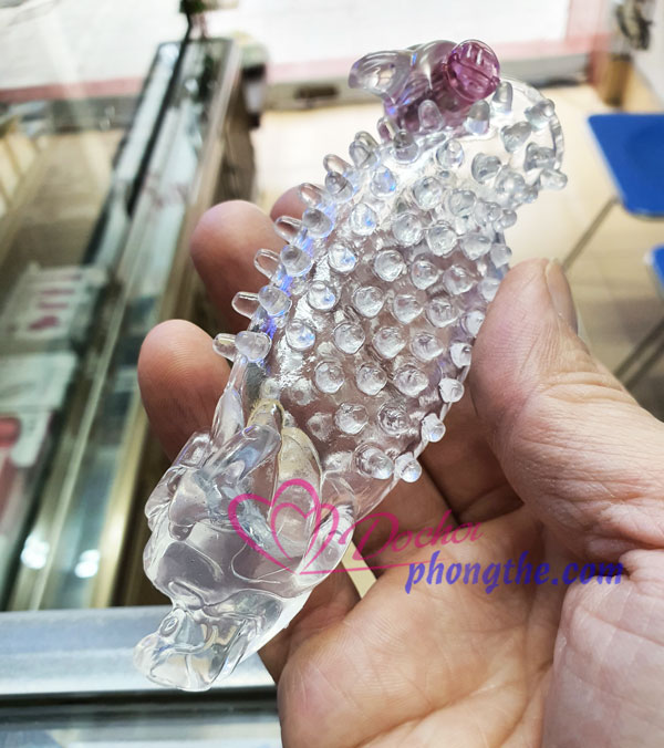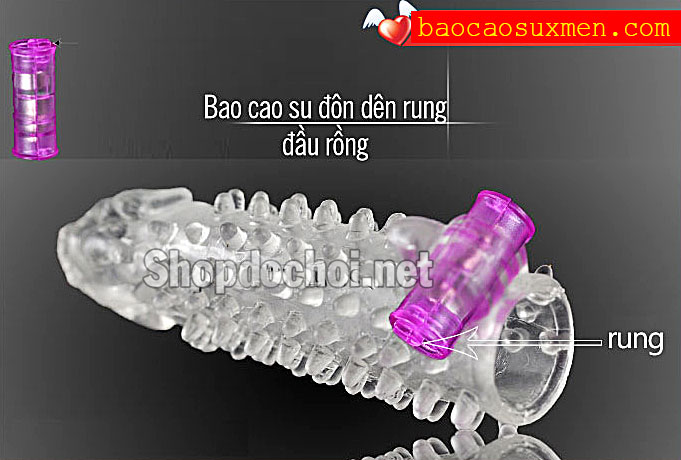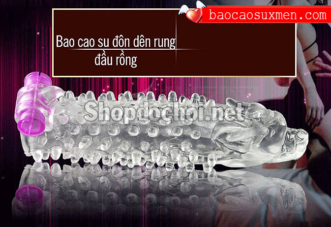 - Bao cao su đôn dên đầu rồng gai rung là loại bao được cậu tạo từ khối Silicon y tế cao cấp trong suốt với việc gia công trên một khuôn dập, dập hàng loạt. trên thâm là những bi nhỏ gai và gân tạo ra cảm giác vuốt ve phần bên trong của âm đạo mỗi khi được co sát. Đặc biệt phần trên của âm đạo có râu dài để kích thích điểm G của cô bế âm đạo giúp cho cô bé luôn đạt khoái cảm khi làm tình. Phần cuống dưới là hệ thống Pịn cúc rung động bởi motor nhỏ giúp tăng khoái cảm cực đỉnh. Với chế độ rung mạnh với su hướng làm cho bạn tình đạt trạng thái sung mãn nhất và tạo ra những khoái cảm mới lạ nhất. Chất liệu tạo nên bao cao su rất mềm dẻo và thoải mái nhất, đặc biệt là sự đàn hồi và dai tạo cảm giác an toàn nhất cho người sử dụng.