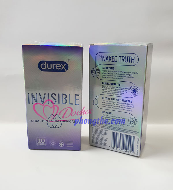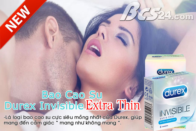 - Bao Cao Su Durex Invisible Extra Thin là dòng sản phẩm bao cao su cao cấp & cực siêu mỏng nhất của Durex. Được đánh giá là 1 trong những loại bao cao su mang đến cảm giác chân thật nhất cho người sử dụng.