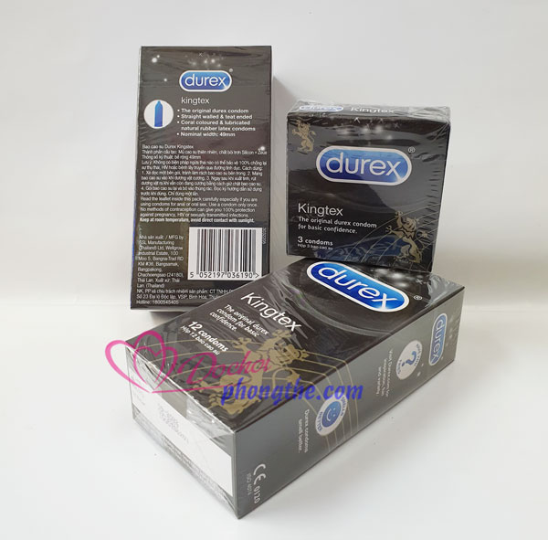 Bao cao su Durex KingTex size nhỏ 49mm. Durex KingTex ôm sát chặt chẽ chống tụt. Bao cao su chính hãng Durex bán tại shop bao cao su hà nội