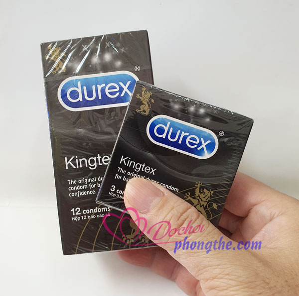 - Bao cao su Durex Kingtex là loại bao cao su được thiết kế nhỏ hơn bình thường, nó ôm sát, tạo cảm giác vừa vặn thoải mái cho bạn không lo tụt bao. Nhất là những bạn có "dương vật" nhỏ, hoặc sợ tuột bao trong lần đầu tiên sử dụng. Hiện tại đây là loại bao nhỏ nhất.