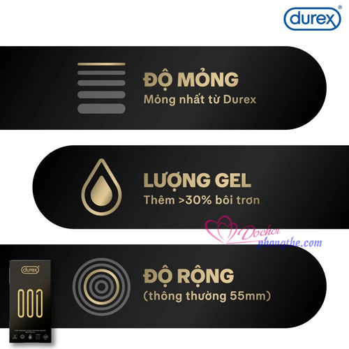 Durex siêu mỏng được thiết kế với đầu ôm sát, phù hợp với nhiều kích thước, giúp tạo độ bố cáo cao nhất.