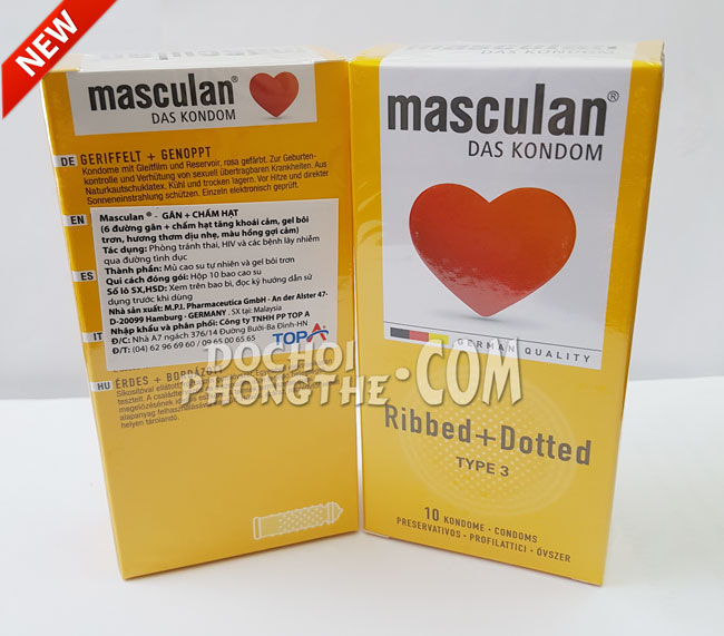 - Bao cao su Masculan® Ribbed + Dotted, cho cảm giác phấn khích – đáng tin cậy và rất an toàn.