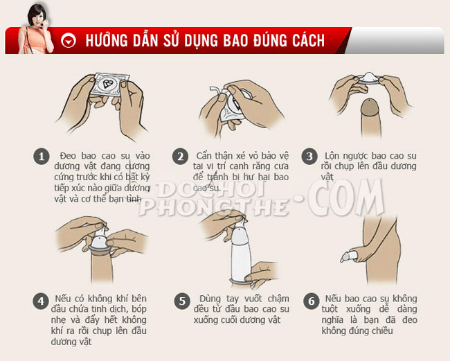 - Mang bao cao su vào trong khi dương vật cương.