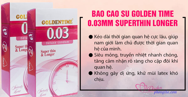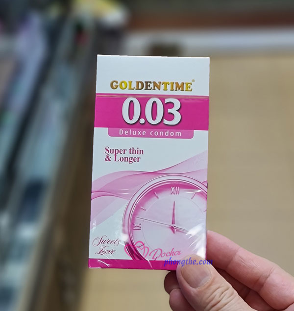 – Tên sản phẩm: Bao cao su Goldentime Superthin Longer 0.03