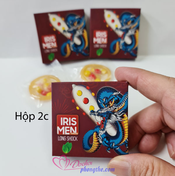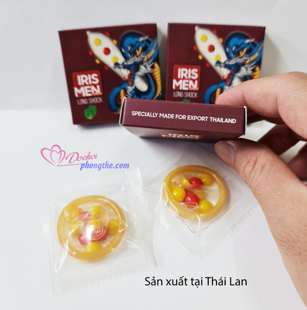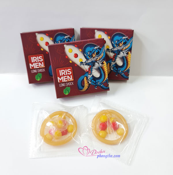 Bao cao su Iris-Men 9 bi to khủng xếp dọc thân bao tăng khoái cảm cho bạn tình . BCS 9 bi kết hợp 3% Benzocanein chống xuât tinh sớm kéo dài thời gian quan hệ