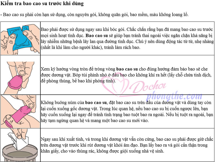 - Hủy bao cao su siêu mỏng đã dùng một cách vệ sinh. Gói bao lại và bỏ vào thùng rác (không được giội xuống nhà vệ sinh).