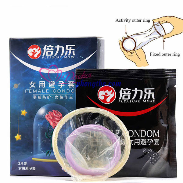 - Female condom là loại BAO CAO SU NỮ được làm bằng chất liêu cao cấp trong y khoa Polyurethan.