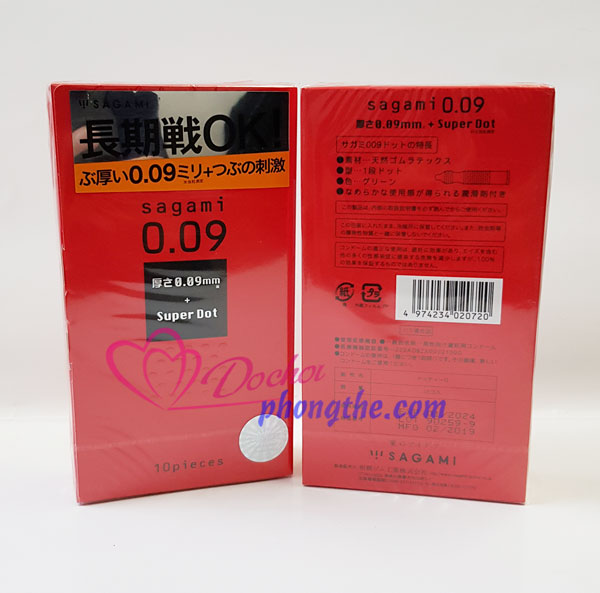 - Nếu bạn cần một chiếc bao cao su dầy dặn, nhiều gai nổi và nổi to suốt thân bao, an toàn tuyệt đối, không mùi cao su khó chịu và chống dị ứng bao cao su… thì đó ắt hẳn là nên chọn bao cao su Sagami super dot 0.09. Sản phẩm của Sagami Nhật Bản nhập khẩu chính hãng.