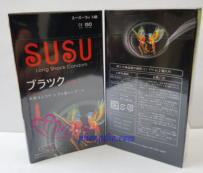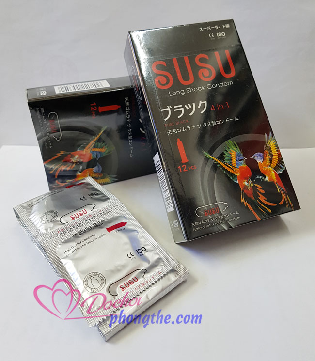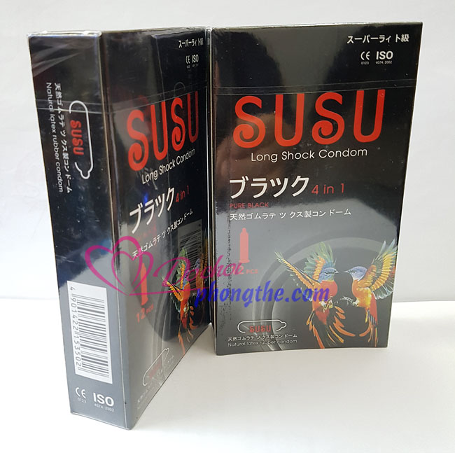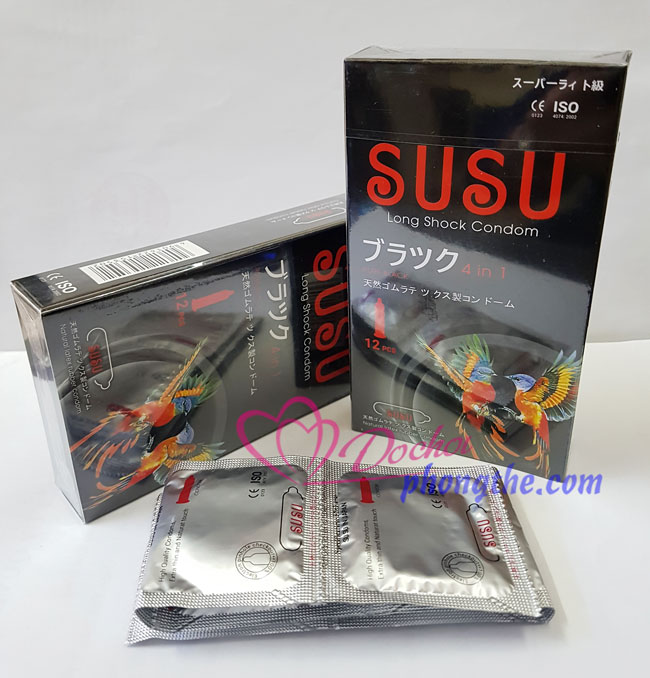 - Bao cao su SuSu Long Shock Super Thin là sản phẩm bao cao su kéo dài thời gian quan hệ, ngoài tác dụng tránh thai ngoài ý muốn, sử dụng bao cao su SuSu giúp các quý ông mắc chứng xuất tinh sớm yêu lâu hơn bởi chứa chất bencozamin . SuSu Long Shock Super Thin là sản phẩm có thiết kế siêu mỏng cho cảm giác yêu chân thực hơn.