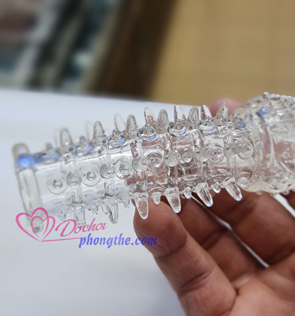 - Bao đôn dên siêu gai thiết kế kiểu dáng hình mũi tên với bao quy đầu nổi cộm với thảm gai chi chít nhưng lại vô cùng mềm mại không làm đau xước cô bé. Những tua gai mềm tua tủa là những điểm dễ kích thích lên thành âm đạo, khu vực điểm G khiến chị em ngây ngất và hưng phấn tột độ khi dương vật cọ xát và chà mạnh.