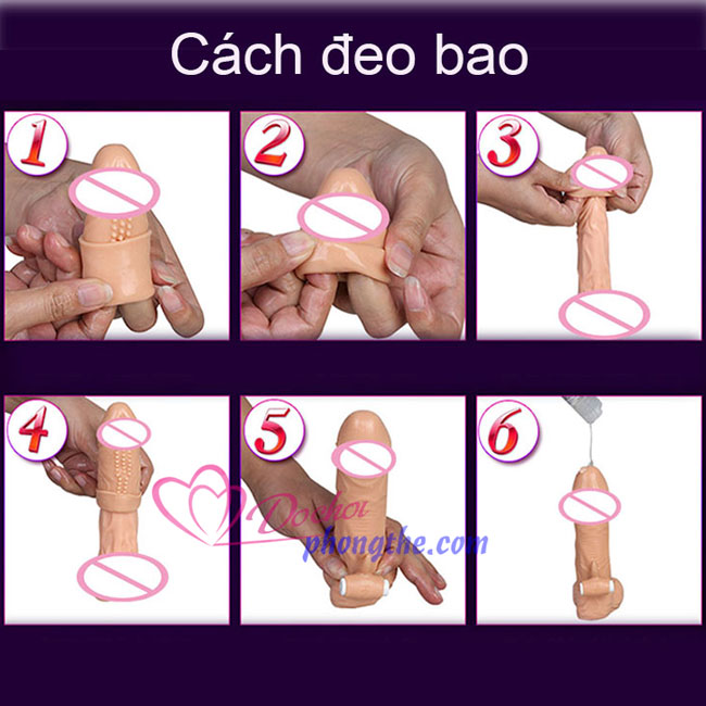 - Đeo bao khi dương vật đã cương cứng, bật chế độ rung trước khi sử dụng và tiến hành các bước bạn thích cho tới khi thỏa mãn thì đưa bao ra ngoài