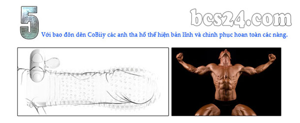 - Bao cao su đôn dên mỏng CoBiiy gân gai có rung giúp cho cuộc yêu của bạn trở nên thăng hoa, hưng phấn tột cùng, còn các chàng thì chứng mình được đẳng cấp phái mạnh của mình khi chinh phục nàng với thời gian yêu "bền bỉ" còn nàng thì được thỏa mãn cơn khát "tình duc" hoan lạc.