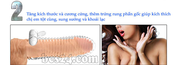 - Việc tăng kích thước dương vật nhẹ nhàng khi dùng sản phẩm này là một sự lựa chọn hoàn hảo bởi tính chất silicon y tế mềm mại, có độ dẻo dai và an toàn cao. Hơn nữa thiết kế của bao ôm sát với dương vật thật của đàn ông sẽ khiến chị em thích thú và hưng phấn hơn. Việc gia tăng khoái cảm và hưng phấn sẽ trở lên dễ dàng đối với cả hai bạn.