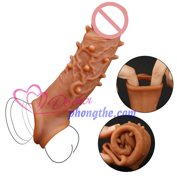Bao đôn dên tròng bìu Jiuai siêu gai nối dài 3cm mềm mịn giống thật. Bao cao su đôn làm to dài chim thêm chiều dài 3cm thích hợp với những anh có chim nhỏ