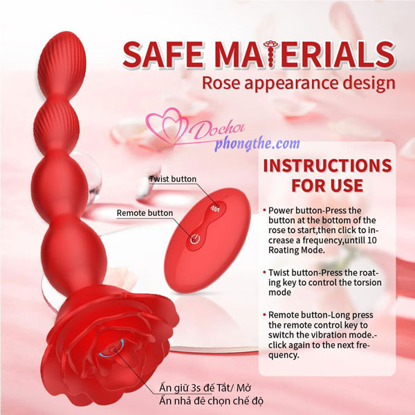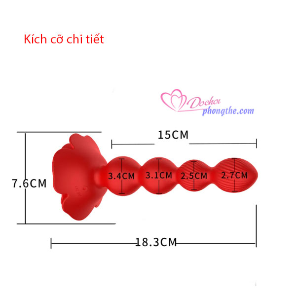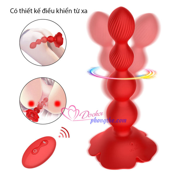 - Butt Plug rung ngoáy hậu môn dạng chuỗi hạt điều khiển từ xa là một siêu phẩm đồ chơi tình dục hậu môn vừa mới ra mắt gần đây giúp cho các bạn Nam, Nữ, Gay, Les.. đạt được nhiều khoái cảm hơn khi chơi ở cửa sau. Sản phẩm được thiết kế như 1 bông hoa hồng có cành là dạng chuỗi hạt nối liền nhau vô cùng độc đáo với đường kính tăng dần từ đỉnh đầu xuống phía dưới khiến người dùng cảm thấy phấn khích hơn khi thủ dâm ở hậu môn.