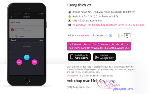 - Bạn có thể điều khiển đồ chơi tình yêu này từ xa thông qua app của Lovense. Nó Tương thích với rất nhiều dòng điện thoại: iPhone, iPad, Android, Mac. Chỉ cần bật bluetooth và ghép đôi với sextoys, là các nàng có thể rảnh tay tự xử rồi đó. Ứng dụng vô cùng xịn sò không giới hạn chế độ rung nhé. Đặc biệt là em này có thể điều khiển ở bất kỳ đâu, dù cho một người ở Việt Nam, người kia ở Mỹ. Đây là cứu tinh gắn kết yêu thương cho các cặp đôi yêu xa, hay chồng thường xuyên vắng nhà.. Hãy chọn chế độ yêu thích, và sáng tạo kiểu rung cho riêng mình. Giờ thì tự sướng và cảm nhận cuộc yêu đầy hưng phấn rất riêng.