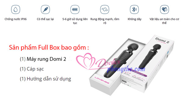 - Chày rung Lovense DOMI 2 cao cấp rung cực mạnh không giới hạn. Silicon y tế siêu mềm mịn an toàn. Kết nối qua app điện thoại thông minh để tự tạo vô số chế độ rung phù hợp với mình. Khả năng chống nước 100%, yên tâm khi sử dụng trong phòng tắm. Kích thước vừa vặn, cầm nắm chắc tay. Có thể dùng để massage thư giãn toàn thân cực kỳ hiệu quả.