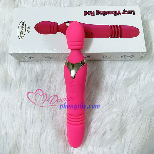 Máy massage điểm G vùng kín cực mạnh. Chày rung 2 đầu Lucy Vibrating Rod, đầu rung đuôi thụt. Dụng cụ hỗ trợ phòng the