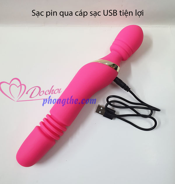 - Chày rung Lucy Vibrating Rod được sạc điện với dây sạc USB thời lượng sử dụng cũng khá cao nên chị em hoàn toàn yên tâm không lo hết pin giữa chừng mà làm giảm đi sự sung sướng.
