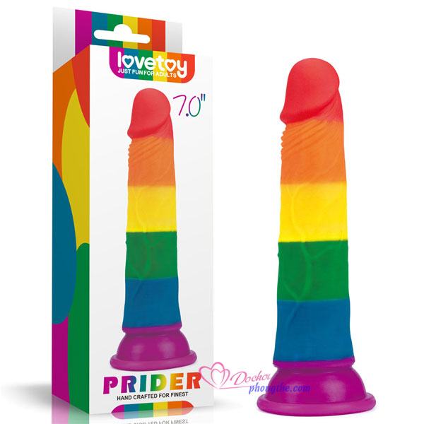 Dương vật giả ngũ sắc Lovetoy Prider cỡ vừa Sextoy cho phụ nữ chơi đồ giả thoải mái. Chim Cu Buồi giả dán tường cực chắc.