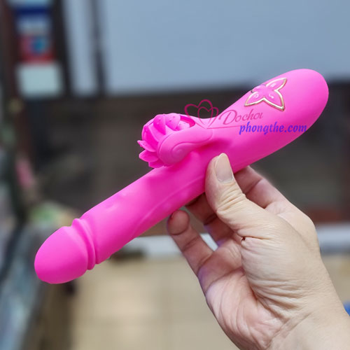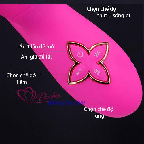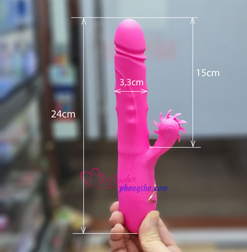 - Chim giả cầm tay đa năng Esther rung, thụt, liếm, sóng bi còn có thêm một nhánh phụ với nhiều chiếc lưỡi liếm nhỏ mềm mại sẽ rung và xoay liên hồi kích thích lên âm vật và các vùng môi ngoài âm hộ khiến nàng sung sướng một lúc cả trong và ngoài.