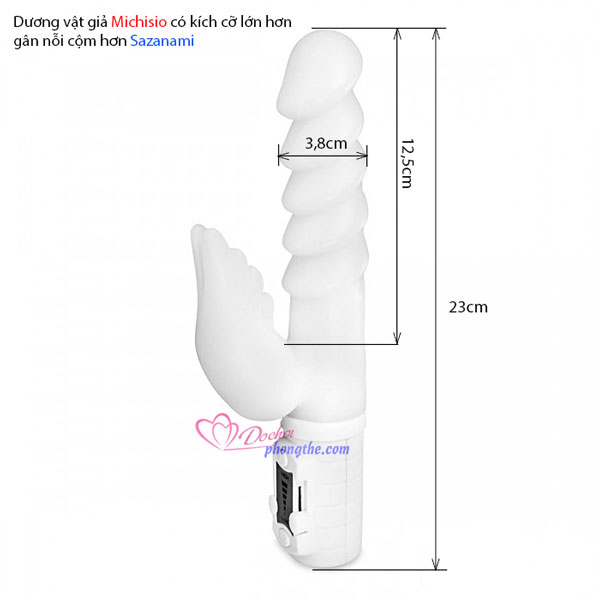 - Chim giả rung ngoáy Michisio có chức năng rung và ngoáy có nhiều tần số để lựa chọn giúp bạn tận hưởng nhiều khoái cảm và những cung bậc cảm xúc khác nhau khiến bạn thỏa mãn và dễ dàng đạt được cực khoái.