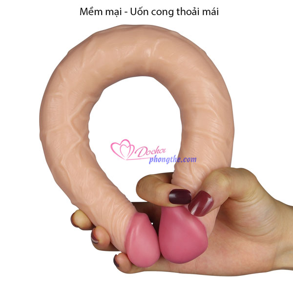 Cu giả 2 đầu Lovetoy Double mềm mại giống thật, hỗ trợ quan hệ tình dục kiểu "SOLO" độc đáo. Dương vật, Chim, Buồi giả hai đầu mềm dẻo. Dụng cụ kích dục cho nam, nữ, les, gay