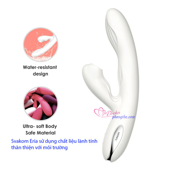 - Cu giả rung mút sưởi ấm kích thích vùng kín Svakom Eria là dòng đồ chơi tình yêu cao cấp của hãng SVAKOM nổi tiếng đang được bán chạy ở nhiều quốc gia và trong đó có nhiều chị em phụ nữ Việt Nam ưa chuộng. Sản phẩm này có vẻ ngoài trắng tinh khiết trông nó vô cùng sang trọng kèm theo là lớp vỏ mềm mịn mang lại cho chị em những khoái cảm sung sướng đầy đê mê không muốn thoát ra.