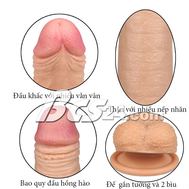 – Sản phẩm dương vật giả dán tường siêu mềm mịn với mô phỏng thiết kế giống y chang dương vật thật của đàn ông. Không những giống mà ngay những chi tiết nhỏ cũng được mô tả một cách cẩn thận bởi những bàn tay khéo léo của nhà thiết kế chuyên về đồ chơi tình dục Mỹ. Đặc biệt ở phần đầu dương vật ngay phía dưới bao quy đầu với những nếp gấp nhằng nhịt, dọc thân là những vân vằn với những chấm liti cùng với đường gân nổi cộm tạo kích thích và ma sát mạnh mẽ khi chạm sâu bên trong âm đạo đặc biệt thành âm đạo chị em.