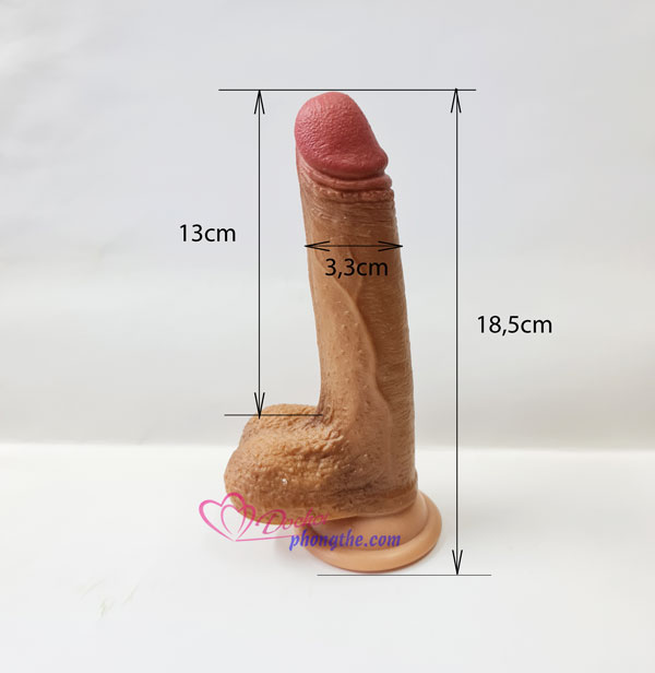 – Sản phẩm dương vật giả dán tường siêu mềm mịn với mô phỏng thiết kế giống y chang dương vật thật của đàn ông. Không những giống mà ngay những chi tiết nhỏ cũng được mô tả một cách cẩn thận bởi những bàn tay khéo léo của nhà thiết kế chuyên về đồ chơi tình dục Mỹ. Đặc biệt ở phần đầu dương vật ngay phía dưới bao quy đầu với những nếp gấp nhằng nhịt, dọc thân là những vân vằn với những chấm liti cùng với đường gân nổi cộm tạo kích thích và ma sát mạnh mẽ khi chạm sâu bên trong âm đạo đặc biệt thành âm đạo chị em.