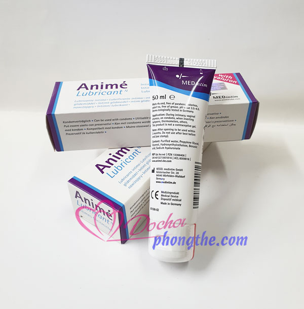 - Để giúp cuộc yêu giữa các cặp đôi được trở nên chọn vẹn hay các chị em gặp vấn đề như khô âm đạo, ít chất nhờn. Hãng sản xuất Medintim đến từ Đức - nhà sản xuất chuyên nghiên cứu về lĩnh vực phòng tránh thai, chăm sóc sức khỏe tình dục đã đưa ra thị trường dòng sản phẩm gel bôi trơn gốc nước Animé với nhiều tính năng đặc biệt nhằm mang lại trải nghiệm hấp dẫn cho người dùng. Sản phẩm được sản xuất với công nghệ tiên tiến hiện đại với thành phần là các dưỡng chất, ngoài ra còn chứa thành phần Sodium Hyaluronate giúp chữa lành các mô âm đạo của phụ nữ và bộ phần sinh dục của nam giới sau những tổn thương sau khi quan hệ.