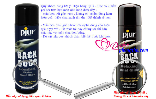 - Gel bôi trơn hậu môn Pjur Back Door là loại gel siêu trơn đặc biệt chuyên dùng cho quan hệ tình dục qua đường hậu môn , trong suốt ,tan trong nước , không mùi , không vị , có tính diệt khuẩn cao ,không tác dụng phụ , an toàn khi sử dụng , thân thiện với các loại bao cao su