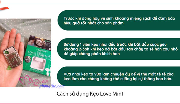 - Kẹo ngậm Love Mint là sản phẩm được dành cho các cặp đôi trong vấn đề cải thiện chuyện chăn gối nhất là "ORAL SEX", được chắt lọc từ các thành phần thiên nhiên lành tính