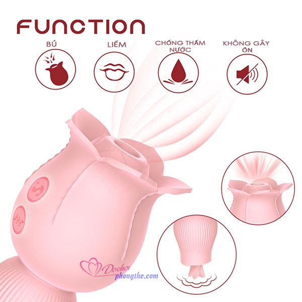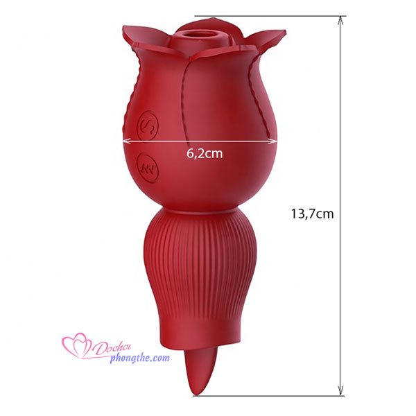- Máy bú liếm hình bông hồng có thể dùng cả 2 đầu cho việc mát xa khu vực âm đạo, vùng kín hay bất cứ điểm nhạy cảm nào trên cơ thể như ngực, đầu ti, tai,... Với đầu bú mút được ngụy trang khéo léo bởi những cánh hoa hồng chúm chím vừa mới nở, tựa như nàng thiếu nữ 18 đôi mươi đang e ấp chờ bung nở. Đầu còn lại thiết kế với lưỡi liễm nhỏ xinh rung lên bần bật rât linh hoạt giúp kích thích môi âm đạo khiến nàng sung sướng không ngớt.
