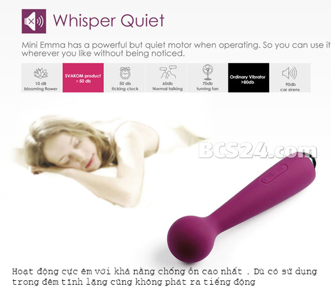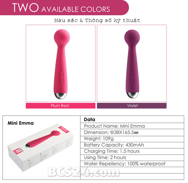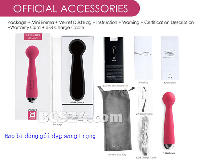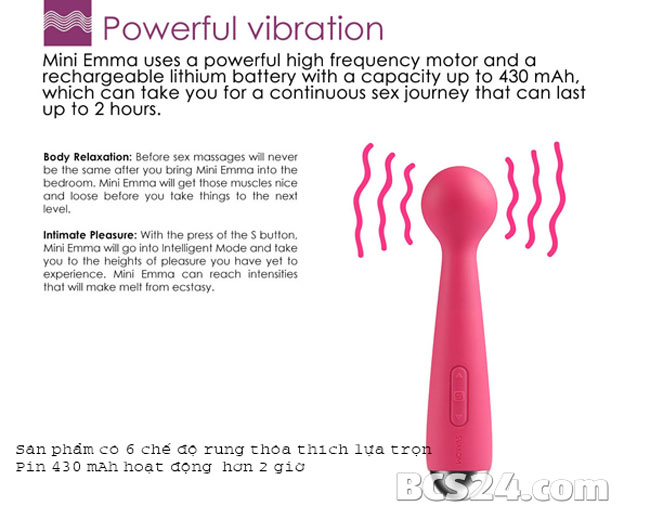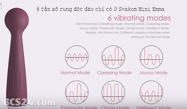 - Máy mát xa điểm G Svakom Mini Emma là phiên bản thiết kế với kích thước nhỏ nhưng lại có được các chế độ rung, kiểu rung mạnh mẽ, được thiết kế dành cho phụ nữ yêu thích kích cỡ nhỏ gọn nhưng vẫn mong muốn sức mạnh rung siêu mạnh của sản phẩm mang lại cảm giác tuyệt vời khi sử dụng.