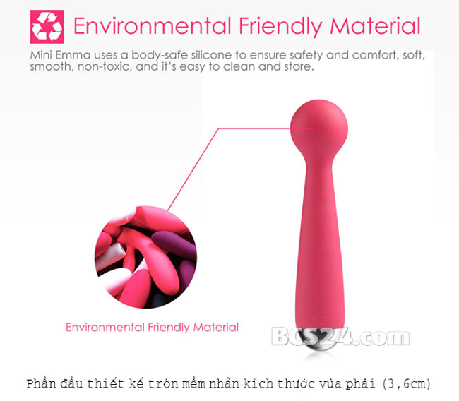 - Sản phẩm đồ chơi tình dục nữ Svakom Mini Emma thiết kế phần đầu tròn linh hoạt trong việc kích thích khu vực âm đạo và các khu vực khác. Ngoài ra, với chất liệu silicon nên rất dẻo dễ dàng di chuyển và chỉnh theo mong muốn của người sử dụng.
