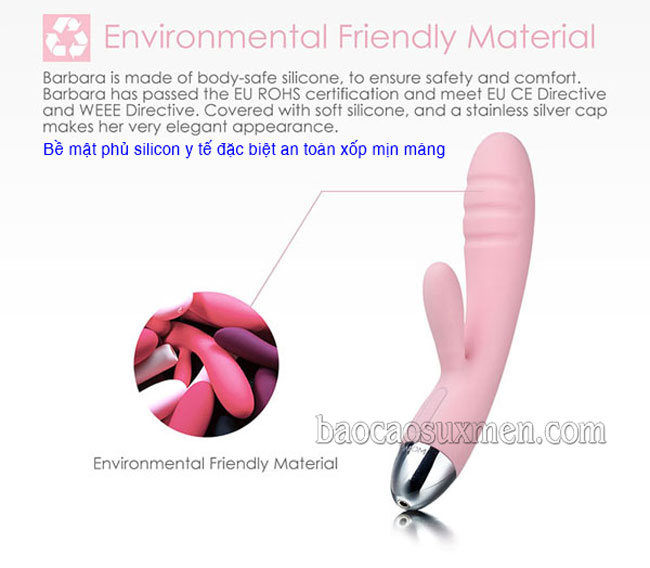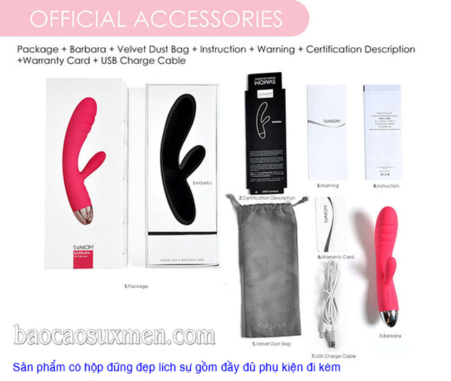 - Với công nghệ xanh 100% không thấm nước, đồng thời đạt chuẩn Châu Âu về quy trình sản xuất và chất liệu y tế Svakom Barbara sẽ giúp bạn thỏa mãn mọi khao khát và gia tăng gấp đôi niềm vui tình ái.