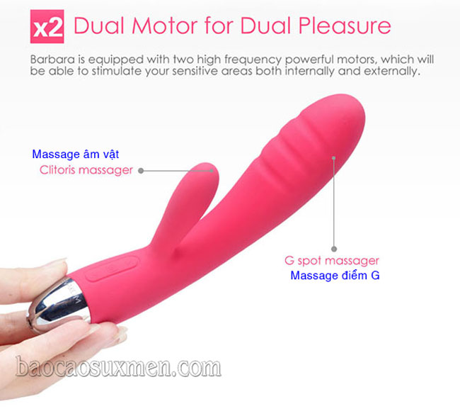- Máy massage cao cấp Svakom Barbara có động cơ kép cùng lúc tạo nên sự kích thích kép khiến vùng nhạy cảm bên trong đạt đến sực cực khoái và cả những điểm bên ngoài cũng bị kích thích và cùng lúc thăng hoa. Phần đầu là một đường cong duyên dáng cùng với các đường rãnh gân nổi Svakom Barbara êm ái lướt vào bên trong và tạo ra những trường kích thích liên tục đến khi cả cơ thể bạn đạt đến tận cùng niềm vui.
