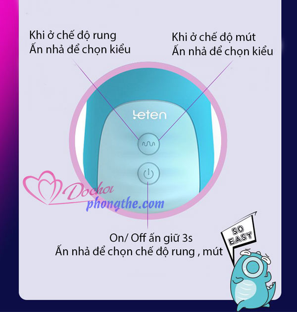 - Máy rung mút vùng kín Leten Little Raptors Sucking tích hợp rất nhiều chức năng độc đáo. Đồ chơi phòng the này có thể rung, mút, thổi với các tần số khác nhau. Bạn có thể tận hưởng trọn vẹn cung bậc cảm xúc, từ nhẹ nhàng mơn trớn đến mãnh liệt cao trào.