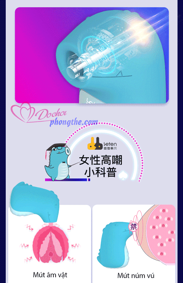 - Chức năng: Rung, Mút, mát xa toàn thân, kích thích khoái cảm cho nữ