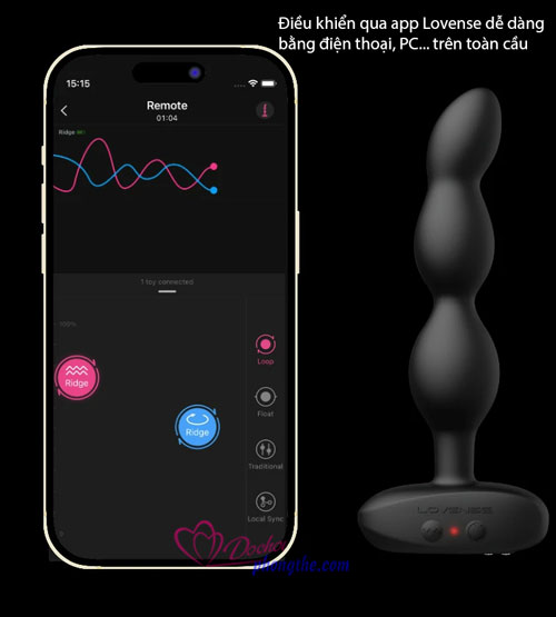 - Chưa hết đâu, Lovense Ridge còn có tính năng kết nối qua ứng dụng riêng của Lovense. Khi kết nối vào ứng dụng này, các bạn sẽ tha hồ sáng tạo nên những kiểu rung động theo ý thích của mình. Bên cạnh đó, các bạn còn có thể trải nghiệm những tính năng hiện đại có trong app như đồng bộ hóa âm nhạc, kích hoạt âm thanh, điều khiển từ xa, điều khiển tương tác đường dài với đối tác,…