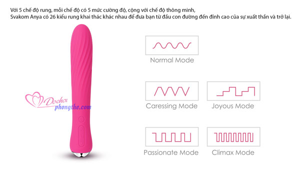 - Máy rung Svakom Anya mát xa điểm G có sưởi ấm là sản phẩm cao cấp được sản xuất bởi thương hiệu đồ chơi người lớn nổi tiếng Svakom. Sản phẩm có nhiều tính năng độc đáo với mục đích mang đến cho các chị em những khoảnh khắc sung sướng giúp chị em có thể thỏa mãn ham muốn giải tỏa nhu cầu sinh lý.