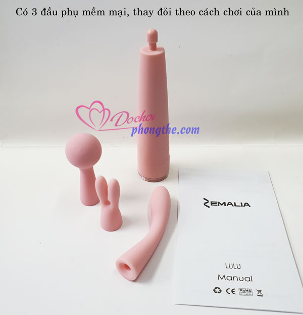 - Máy rung Zemalia LuLu 3 đầu được thiết kế nhỏ gọn và sang trọng, với màu hồng rất nhã nhặn. Sản phẩm được làm từ silicon cao cấp rất mềm đẹp, và an toàn với người sử dụng. Zemalia LuLu được tích hợp 10 chế độ rung khác nhau cho bạn lựa chọn ưng ý nhất để masage kích thích các vùng nhạy cảm trên cơ thể đặc biệt là âm vật và điểm G.