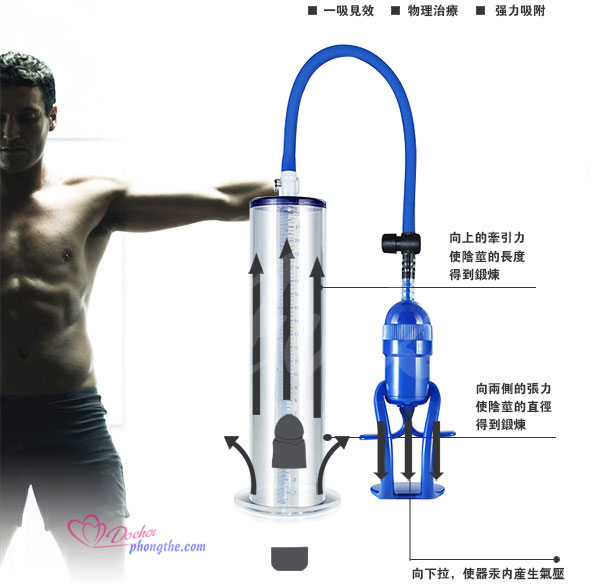 * Thời gian tập : Tập đều đặn hàng ngày , sắp xếp thời gian rảnh rỗi 30 phút tập mỗi ngày . Bơm hút cho dương vật căng và dài ra đến độ cần thiết theo cảm giác, giữ trong 30 giây đến 1 phút sau đó bấm nút xả áp nằm bên trên cò bơm . Cứ như vậy tiếp tục bơm hút cậu bé trong khoảng từ 3 đến 5 lần như vậy trong 1 lần sử dụng.