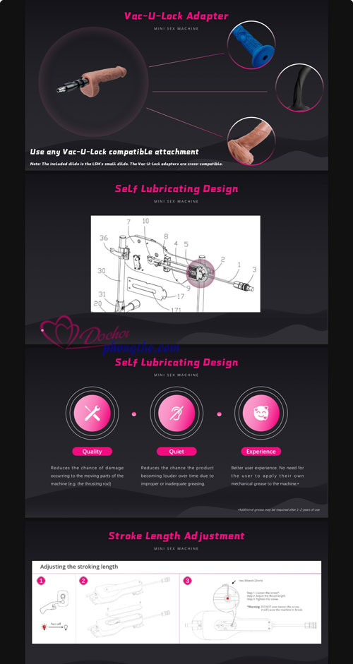 - Tính năng: Thụt tự động kích thích âm đạo, hậu môn; giúp người chơi giải tỏa nhu cầu sinh lý.